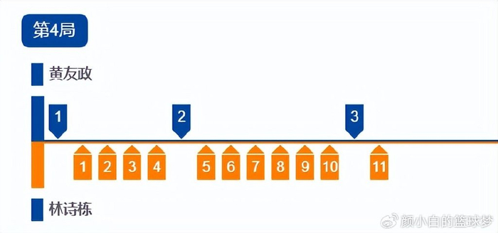 第四局林诗栋的状态终于回来了,开场4-1领先,随后10-2局点,最终11-3将大比分扳成2-2。
